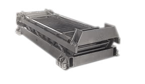 3 - Steel Channel Base is attached to the screening and balance deck by support springs. These springs are made of thin alloy strips clamped together and set at an angle of 60 degrees to horizontal.