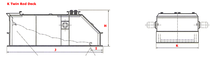 Designed for ultra-high capacity service, available in sizes up to 6' x 12'. Extra tonnages are easily handled by the incredibly powerful vibrating action coming from two K Vibrators in-line with each other. They are mounted directly to the sides of the unit. The six foot wide feed opening is divided right down the middle by a steel plate, so that all the incoming material has a better chance of being evenly distributed over the screening surface.