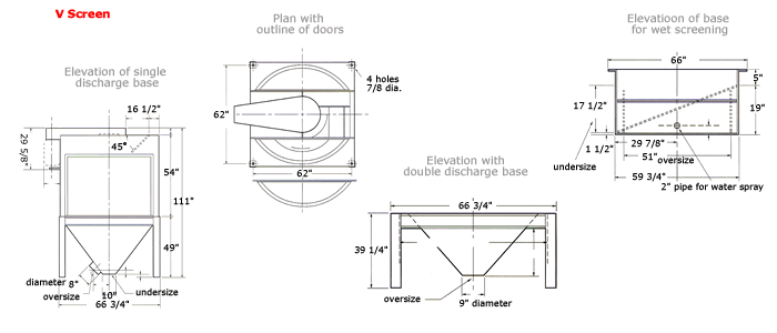 Air currents flowing through the inside of the V Screen have a great influence in getting the fines through the screen cloth, so that there is virtually no undersize material in the oversize product. Very useful in screening lightweight materials.