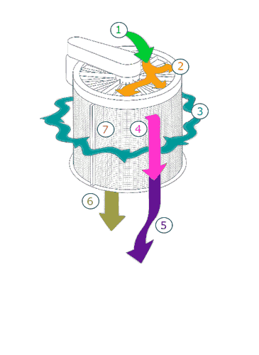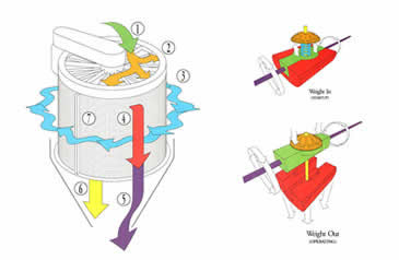 The unique combination of physical forces creates a screening action five times the force of gravity. The drum rotating at a constant speed is geared to gyrate through a half-inch circular path 14 times for each revolution. In this way, the material is subject to over 1,000 pulsations per minute on the screening surface. It is here that the centrifugal force in the material causes it to strike the screen surface 50% more often than with a conventional vibrating screen.